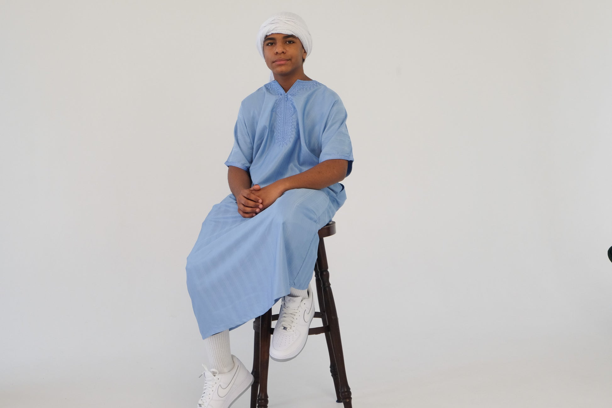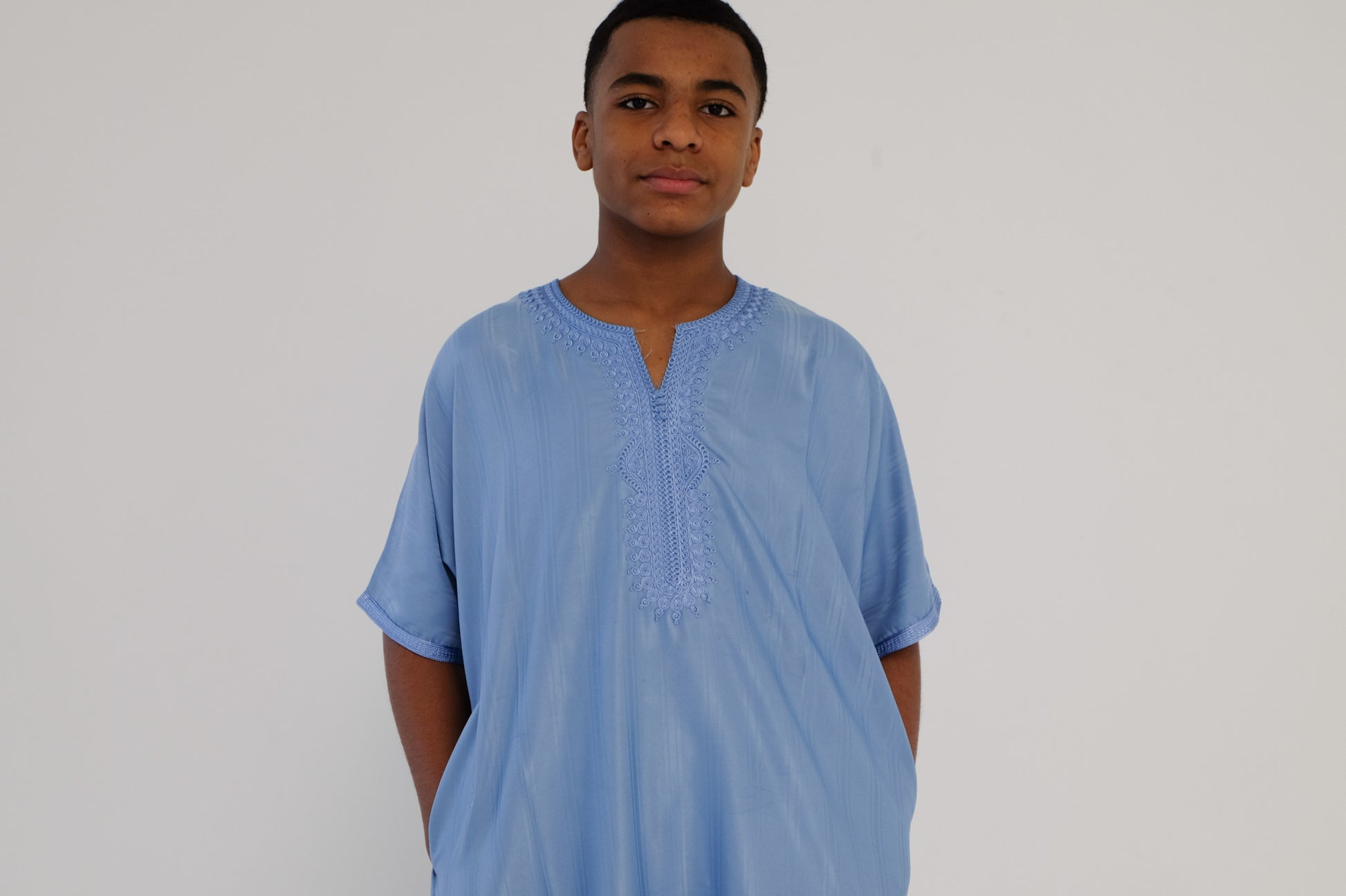 Die Gandoura ist ein traditionelles Kleidungsstück aus dem Nordwesten Afrikas, das sowohl bei Kindern als auch bei Erwachsenen sehr beliebt ist. Diese wunderschöne Kinder-Gandoura wird in Marokko gefertigt. Der feine Stoff besteht aus Polyester und Baumwolle.