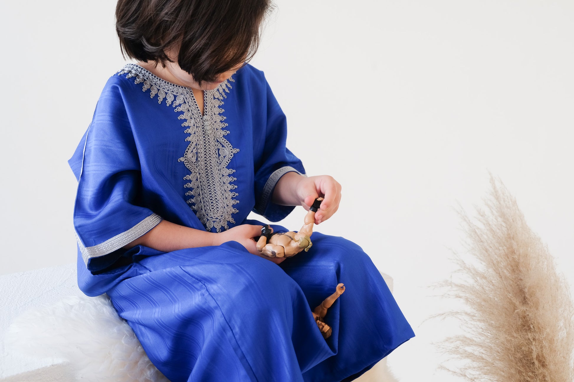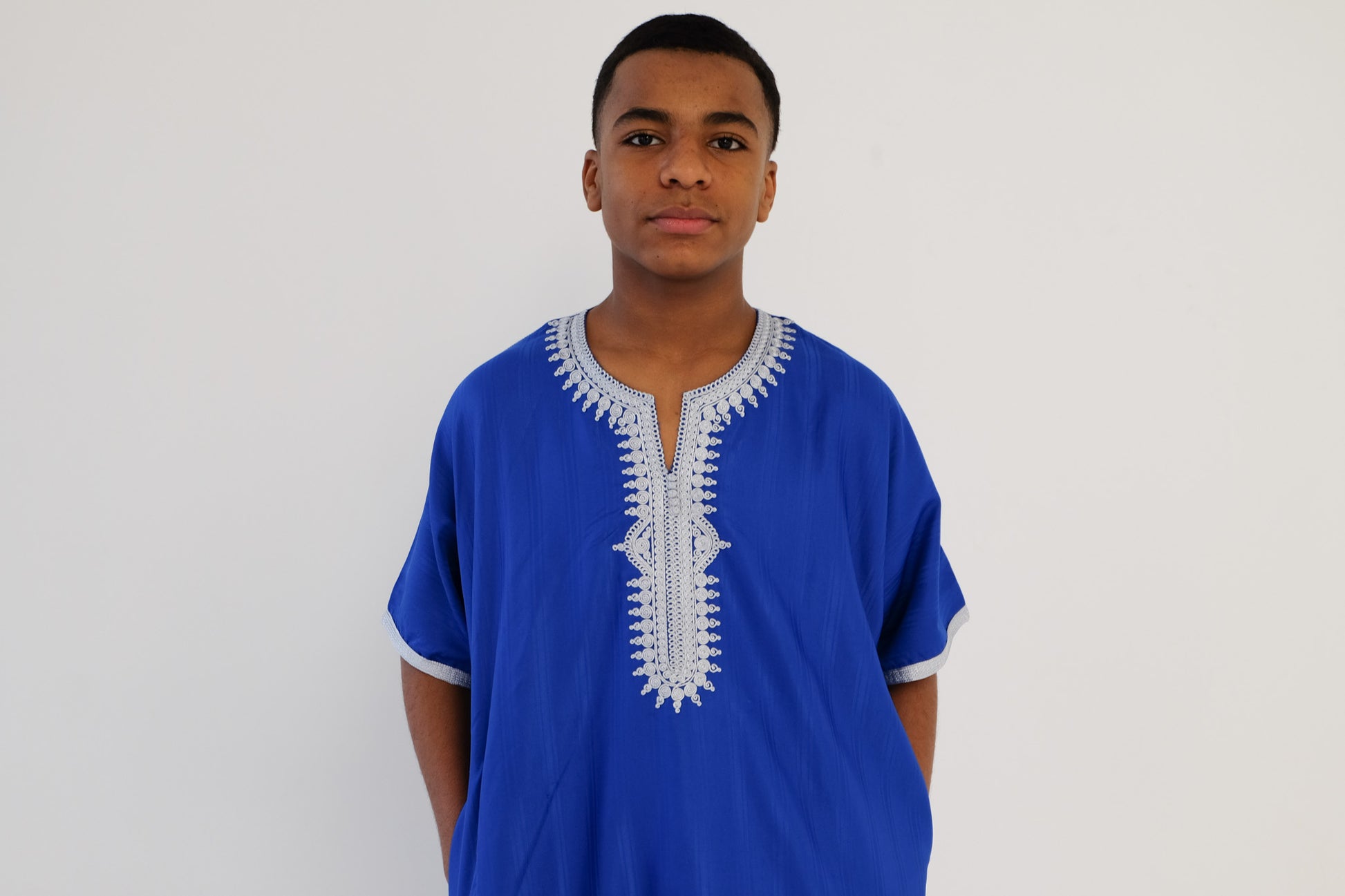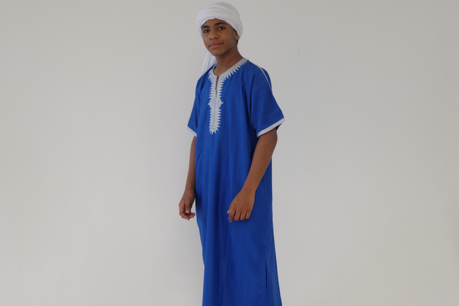 Die Gandoura ist ein traditionelles Kleidungsstück aus dem Nordwesten Afrikas, das sowohl bei Kindern als auch bei Erwachsenen sehr beliebt ist. Diese wunderschöne Kinder-Gandoura wird in Marokko gefertigt. Der feine Stoff besteht aus Polyester und Baumwolle.