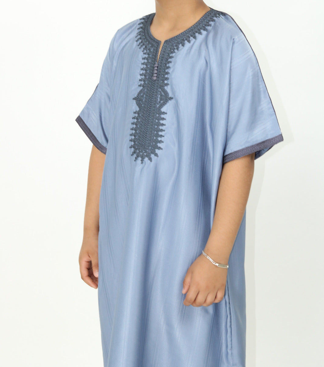 Die Gandoura ist ein traditionelles Kleidungsstück aus dem Nordwesten Afrikas, das sowohl bei Kindern als auch bei Erwachsenen sehr beliebt ist. Diese wunderschöne Kinder-Gandoura wird in Marokko gefertigt. Der feine Stoff besteht aus Polyester und Baumwolle.