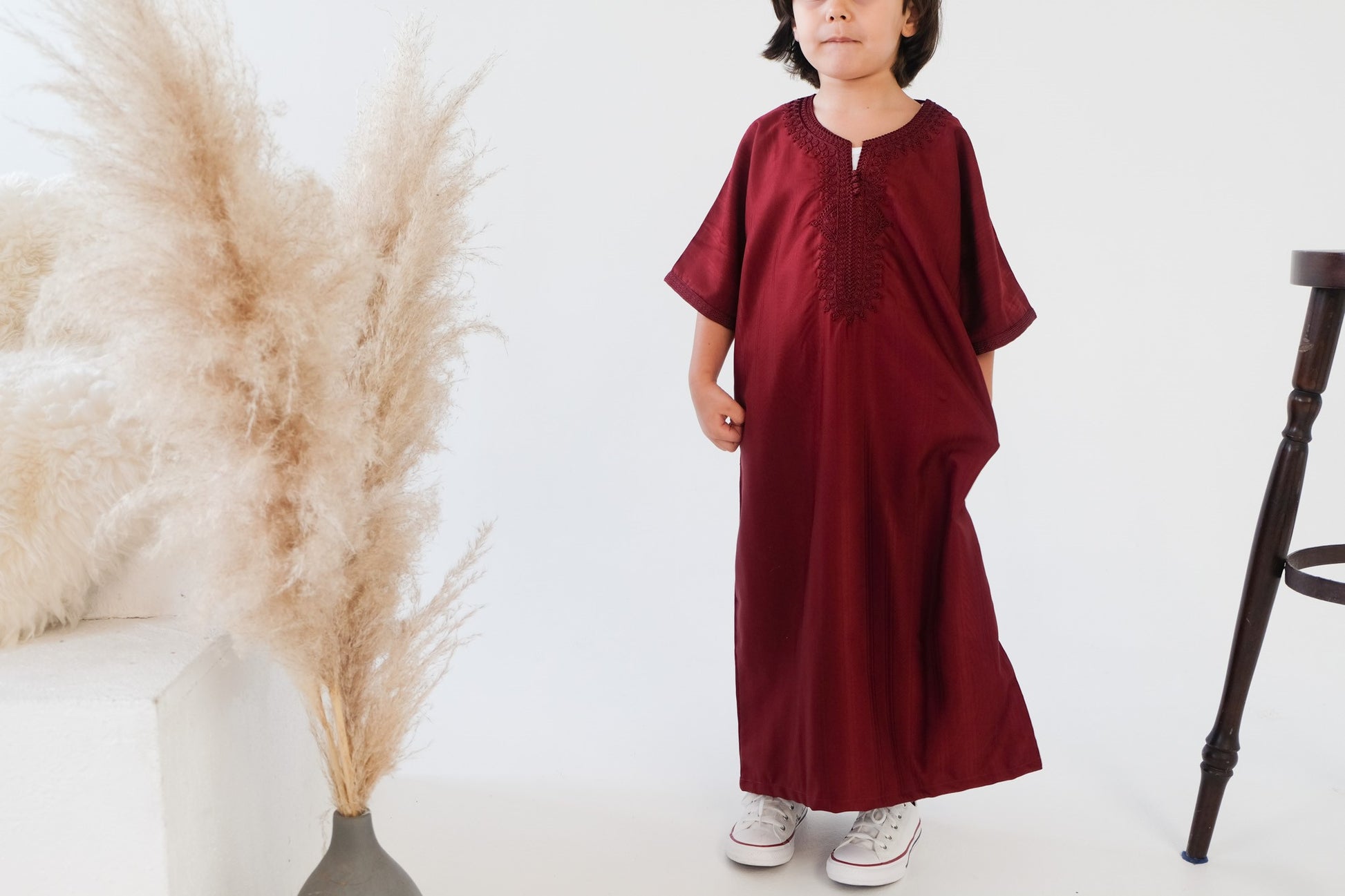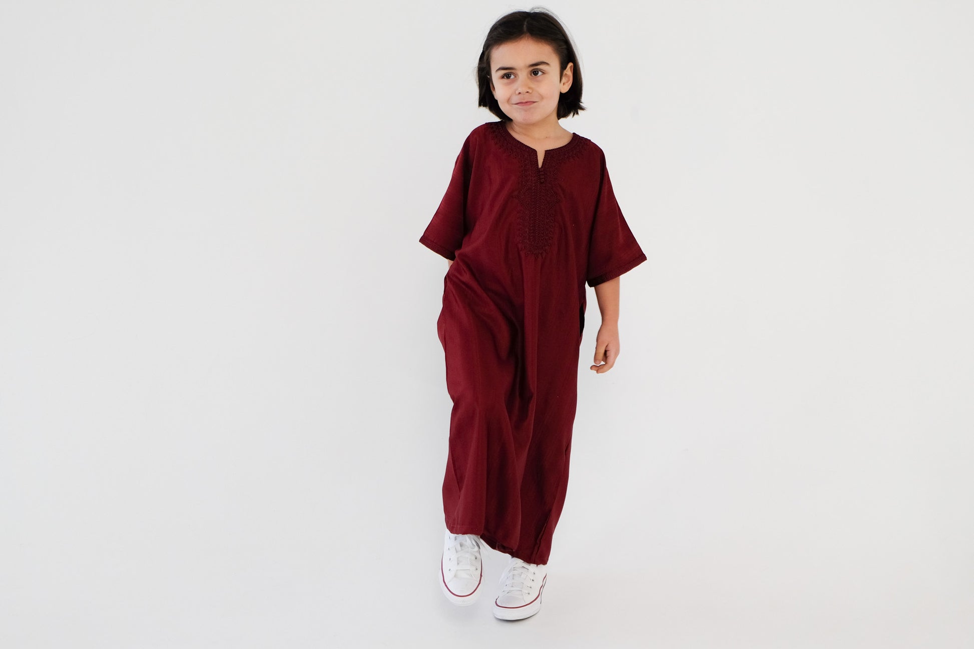 Die Gandoura ist ein traditionelles Kleidungsstück aus dem Nordwesten Afrikas, das sowohl bei Kindern als auch bei Erwachsenen sehr beliebt ist. Diese wunderschöne Kinder-Gandoura wird in Marokko gefertigt. Der feine Stoff besteht aus Polyester und Baumwolle.